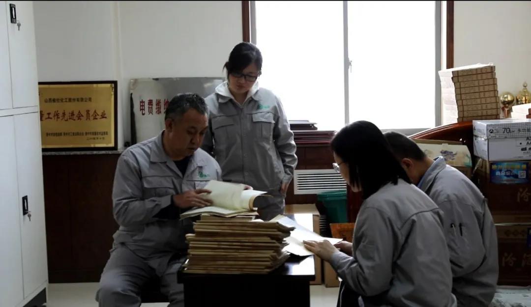 我們一次一次深入檔案室、縣檔案局,翻閱《化工簡報》、《榆社化工報》及其他卷軼浩繁的史料,隨著一本本塵封多年的檔案被開啟,一件件沉寂的往事被重新拾起,一個個曾經(jīng)奮斗的身影被重新演繹......廠史編纂委員會的同事常常被卷宗上年久積落的灰塵弄得噴嚏連連、甚至皮膚過敏;被檔案里發(fā)黃紙張上模糊不清的字跡弄得眼睛酸澀發(fā)脹;堆積如山的資料,分類標記、逐頁翻閱,深怕遺漏,但凡看到國省市縣工業(yè)、化肥文件,榆化、化工字眼,反應大背景、相似事件等文件都要從中尋覓有價值的信息,共計翻拍298份文件,回到公司還需要熟練運用電腦技能,將瑣碎的資料整理成文檔,制作成圖表,編輯整理存檔......