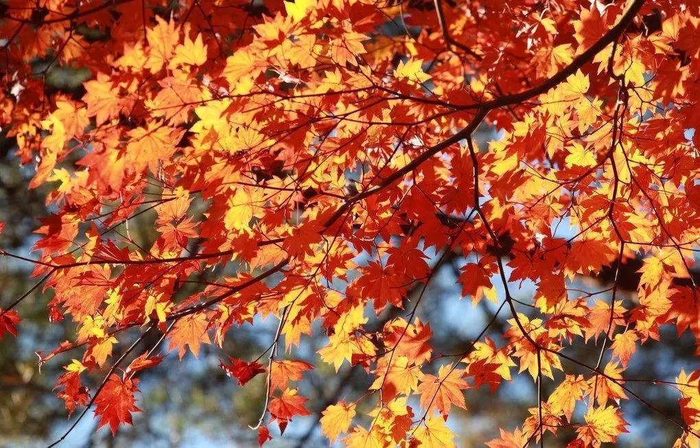 秋天不止有蕭瑟和凄涼,更是絢麗的。未開罷的花朵,紅的像火,白的像云;落到一半的樹葉,奪目的像小金葉子一般搖搖欲墜;還有四季蒼翠的松柏和變幻多端的天空。北方的秋就像是梵高打翻的油畫盤,千萬種語言,都難描繪它有多美。