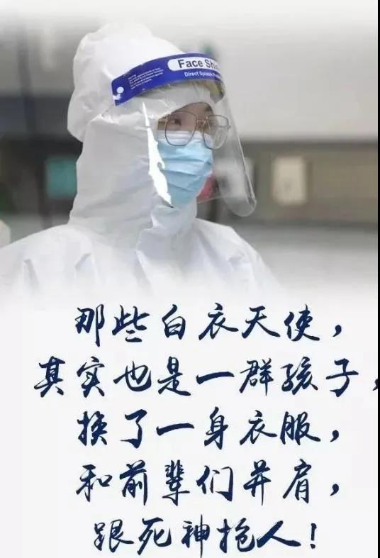 可是,我們是中國人,生在中國這樣一個偉大的國度,我們應該倍感慶幸。于是,第 一 時間,在國家的領(lǐng)導下,石家莊發(fā)起了一級響應,幾天時間內(nèi)整個石家莊的核酸檢測全部完成,這是被外國人稱之為不得不敬畏的中國速度。是啊,就是這群人,這樣一群白衣天使,他們站在沖鋒的第 一 線,主動承擔起了為國家為人民的重任,舍小家為大家,就是這種若有戰(zhàn)必召回的精神支撐著他們,他們是當之無愧的國士無雙。