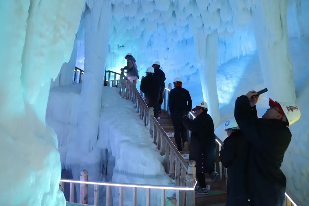 由于時(shí)間緊張,我們?cè)趯?dǎo)游的安排下,四個(gè)人一組乘坐索道纜車上山,隨著纜車的行進(jìn),向外望去,郁郁蔥蔥的樹(shù)木和跌宕起伏的峰巒盡收眼底,一種“一覽眾山小”的快感突涌而來(lái),大約二十幾分鐘后到達(dá)玉皇頂索道站,隨后跟隨著導(dǎo)游來(lái)到鴛鴦玻璃棧橋,它橫架于懸崖絕壁之上,怎一個(gè)“險(xiǎn)”字了得。來(lái)之前就曾了解到云丘山有處神來(lái)之筆“冰洞群”,甚是向往,今日終于親眼看到云丘山冰洞群的真面目,洞內(nèi)寒氣逼人,有冰柱、冰筍,形態(tài)各異,美倫美奐。據(jù)說(shuō)此冰洞群是夏天結(jié)冰,冬天融冰,有神奇的自我修復(fù)能力,是世界三大冰洞奇觀之一。隨著蜿蜒曲折的石階小路,一股霧氣撲面而來(lái),這里就是云丘山不是仙境勝似仙境的神仙峪了,溪水潺潺、“仙氣”繚繞,大家在此爭(zhēng)相取景,好不熱鬧。