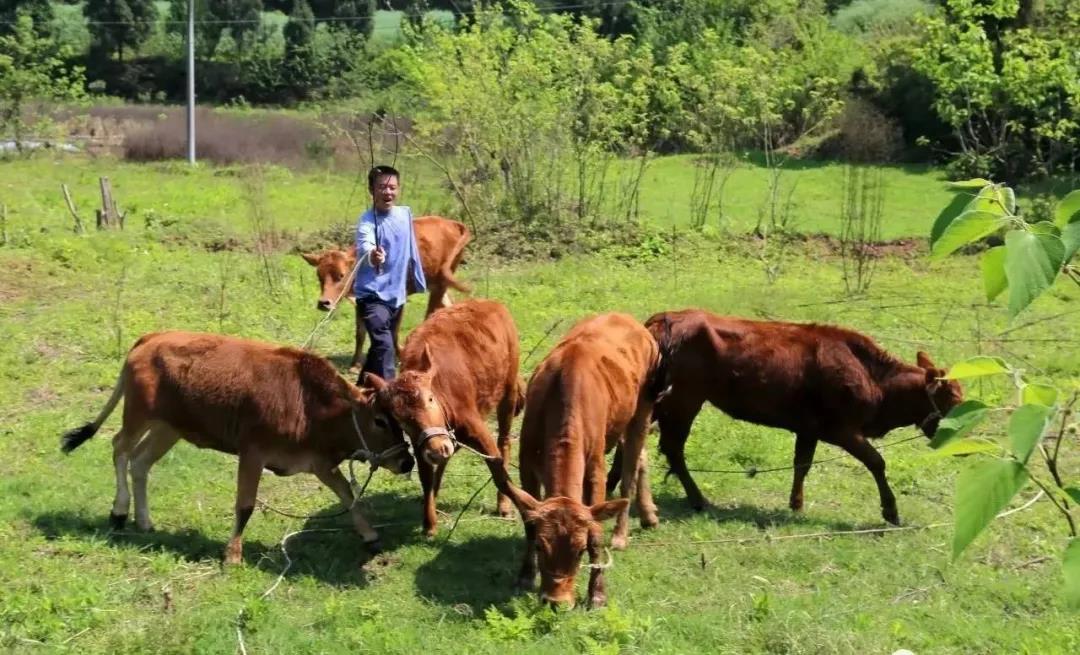 在我小的時候,村里旋耕機、收割機等現(xiàn)代大型農(nóng)機還沒出現(xiàn),牛依然是人們進行春種秋收的主要幫手,因此,那時的村里幾乎家家戶戶都會養(yǎng)一兩頭牛,記憶中我家曾長時間的喂養(yǎng)過一頭紅色的母牛。那時候的農(nóng)活可以說是充滿艱辛的,其中有人的艱辛,更有牛的艱辛。春天時,人們吆喝著拉著粗笨的木制二輪車的牛,將一車車沉重的糞土運向廣袤的田野,再將犁耙套在牛凸起的肩胛上,將剛剛解凍的大地翻得像棉絮一般松軟。秋天時,田野里莊稼一齊成熟了,人們又吆喝著牛拉著二輪車從早到晚將遠近地里沉甸甸的苞谷、谷子、豆類等農(nóng)作物一車車拉回家中,這春秋兩季的辛勞,常常把人累得腰酸背痛,也把牛瘦的肋骨根根可見。