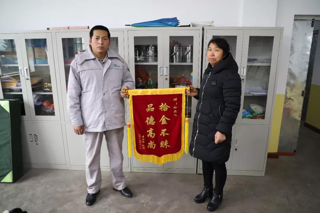 11月29日,失主為表達謝意,親贈動力廠員工白亞飛“品德高尚,拾金不昧”錦旗一面。失主在贈送錦旗時說到,自己包里的東西極其重要,在找回失物時本想拿出酬金感謝,但都被婉言謝絕。在這樣一個浮躁的社會中能遇到這樣品德高尚的人,內心深受感動。