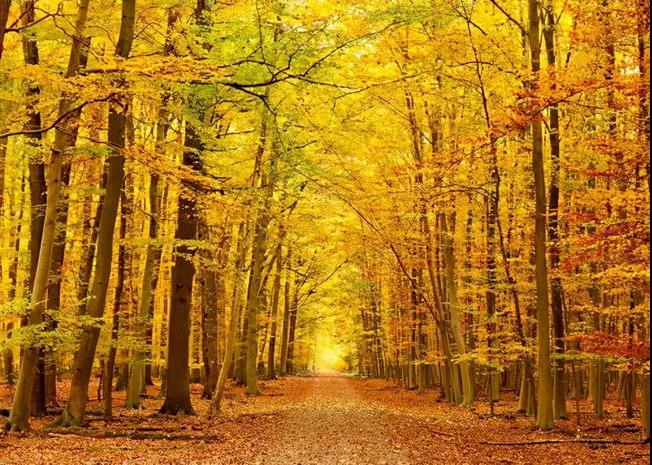 林中落葉堆積,混著枯草腐朽的味道。漫步林間,時(shí)光仿佛也變得弛緩靜謐。心中卻不由得彌漫出一絲淡淡的莫名哀愁。忽然,眼前一亮,在堆積著褐色的厚厚的樹葉中,一枚金黃色的樹葉散落其中。我曾讀過很多關(guān)于描寫秋葉的文章,也曾一定見過那些金黃的落葉,卻從未曾認(rèn)真觀察過。而此刻它竟顯得極為耀眼。