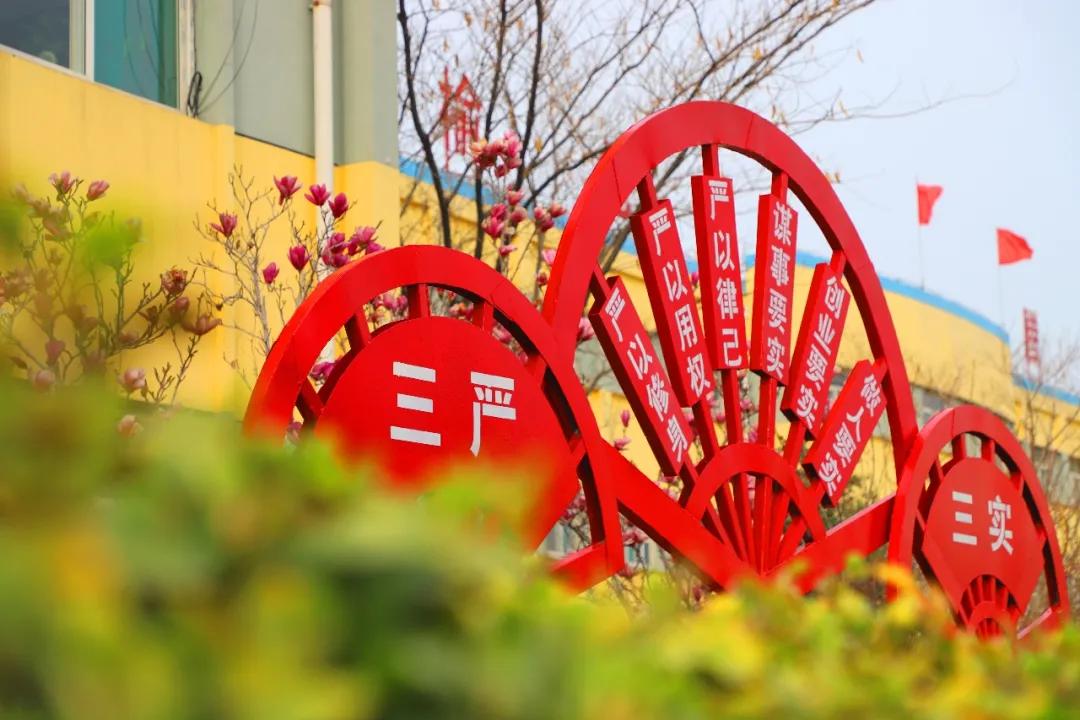 走進電化二廠廠區,映入眼簾的是搖曳多姿的柳樹,大型宣傳欄夾道設立。辦公樓前,春意盎然、生機勃勃,玉蘭花、桃花、杏花競相開放,環形花壇映襯著精致造型標語“三嚴三實、嚴以修身、嚴以用權、嚴以律己、謀事要實、創業要實、做人要實”,彰顯出電化二廠干部員工嚴謹求實的工作態度。