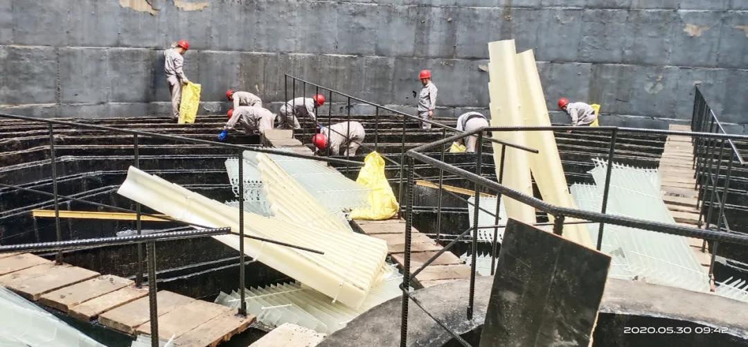 熱電廠副廠長宋強組織運行各工段負責人對現有工藝管道圖紙進行了會審,通過多年經驗對圖紙中存在的一些問題展開了分析討論,形成統(tǒng)一意見,把一些后期施工中會遇到的問題提早解決;安排專人監(jiān)督涼水塔填料、收水器、噴頭的安裝施工。另外,組織運行員工利用副班時間,對涼水塔施工完畢的均水槽進行了檢查、清理,嚴格按照施工要求抓細節(jié)、抓質量,為后期調試投產保駕護航!