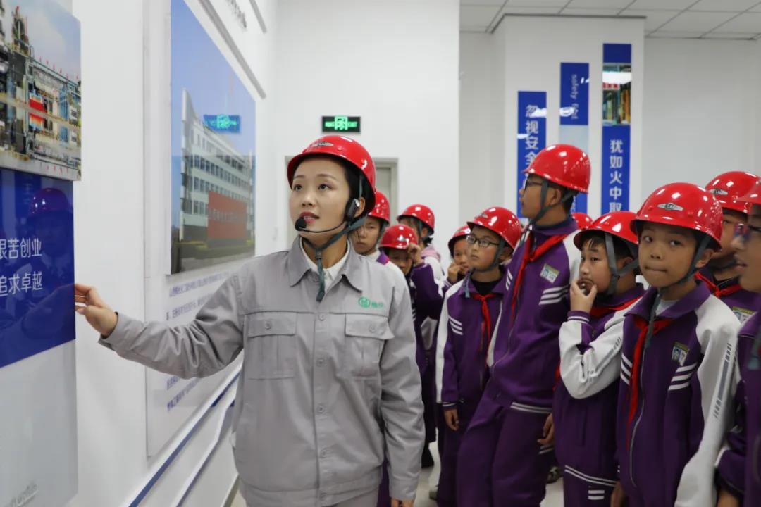 少先隊員們系著鮮艷的紅領巾,在宣傳部工作人員帶領下漫步廠區,向他們介紹廢舊物做成的工藝品和師傅們發揮聰明才智創作的墻繪,孩子們的眼睛里滿是不可思議和欽佩。在電解車間、成品包裝車間和榆化集控中心、污水處理工段進行參觀,通過聆聽、互動體驗等方式進一步了解企業產品及生產工藝。