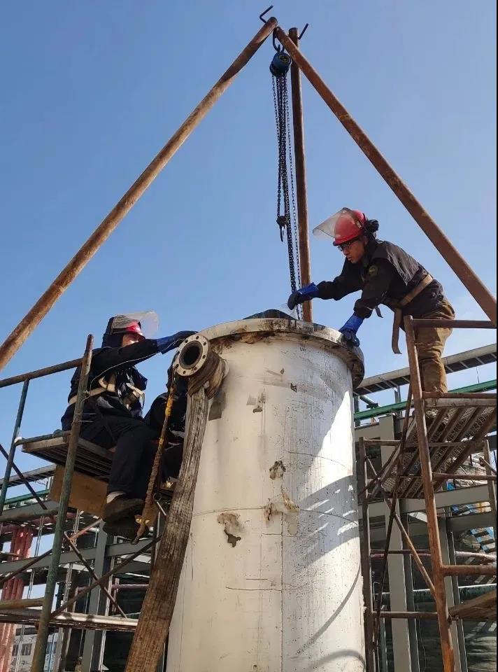 記得有一段時間,10度水一直偏離指標,我們龐師傅帶頭查找原因,緊盯生產一線,每隔一小時取樣分析,不斷在車間分析室來來回回,一個一個換熱器逐一排查,以廠為家,在車間盯守,召集班長操作工開會從工藝各個角度分析。最后終于找到問題所在并順利處理。又一次,換熱器6308維修,焊工師傅們從早上開始干活,一直到晚上12點,一天的勞累沒有讓他們有一絲松懈,為了不耽誤生產,他們急急忙忙吃過飯,又去了勞動現場,接著進行焊接,一直工作到后半夜安裝好,才回去休息。