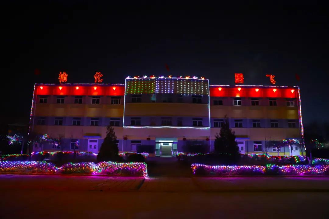 當傍晚的夕陽將天空中最后一抹余暉掩藏,此時的樹脂二廠廠區又呈現出另外一番全新景象??茨寝k公樓前的彩燈你明我亮,辦公樓頂“榆化騰飛”四個大字顯得更加自信和張揚。榆化集控中心四周布滿彩燈和射燈,映射著五顏六色的光,在燈光的掩映下更加高大上。還有那一排的大紅燈籠發出溫暖親切的紅光。廠區里運行設備的轟鳴聲聽起來也讓人倍加心情舒暢。走入這樣的嶄新廠區怎能不讓人心神蕩漾、流連忘返!
