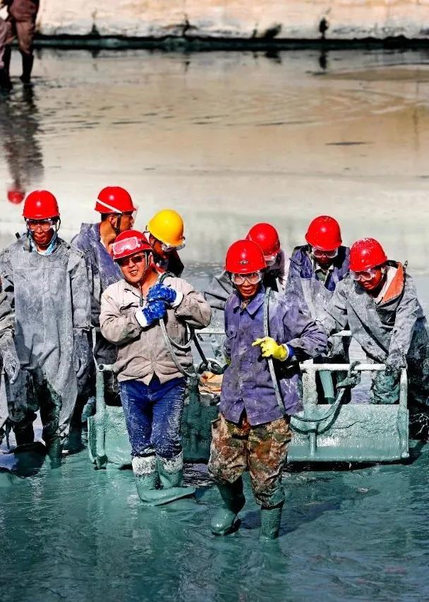 新一代榆化人扎根崗位,堅定不移地追隨榆化愿景,如清理清液池的化工工人們,為了保障生產正常運轉,他們時常加班加點,早晨迎著朝霞,晚上披星戴月。防水服、護目鏡里汗水、泥水混在一起,卻高喊著“一二”“一二”的口號,絲毫不顧及身上的臟污與疲憊。他們拼盡全身力氣推動著鐵鏟,全神貫注與電石污泥作斗爭,許多人手掌磨出了血泡,可依然沒有人喊一聲苦,抱怨一聲累。
