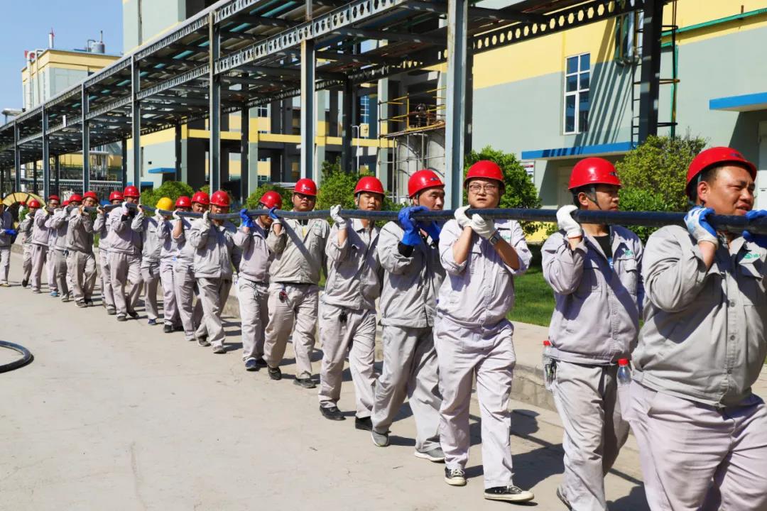 拉電纜干部員工齊上陣,“拉、拽、送”不需言語,只要幾個動作就配合默契,圓滿完成,揮汗如雨,卻面帶微笑,多么可親的一群人。拔河比賽,隊員們咬緊牙關,腳蹬地,哨聲一響,個個精神振奮,斗志昂揚,敢拼命,不服輸,多么可愛的一群人。“一件事,一群人,一起拼,一定贏”,這就是榆化精神。
