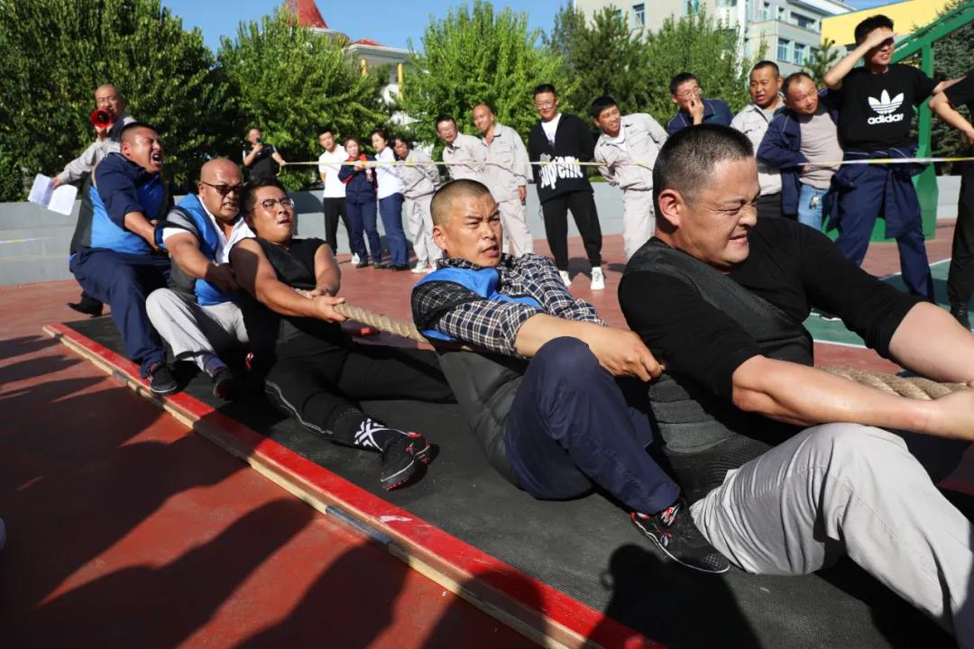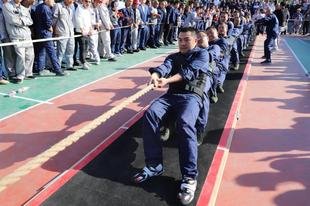 下午兩點半公司籃球場就已經人聲鼎沸,大家都在期待著精彩的決賽角逐,看冠軍到底花落誰家。在裁判員的“起繩”令下,樹脂一廠和電化廠的男隊隊員起繩,瞬間就聽見了大繩被握的“咯吱咯吱”直響,“預備”口號剛出,大家雙腿蹬直,身子向后傾成45°角,集中精神目不轉睛的盯著裁判員的手勢,每個人都憋足了勁要大干一場。隨著“嘟”的一聲哨令,伴著裁判員手勢落下的就是響徹天空的“嗨”的搶繩發力,隨即每個隊員都咬著牙齒拼命使勁的向自己的方向拽繩子,只見隊員們憋的臉部通紅,嘴唇泛白,豆大的汗珠早已浸濕了他們的衣襟,看著僵持不動的大繩,作為拉拉隊的我都緊張的有點喘不過氣來,雙拳緊握上氣不接下氣的喊著“加油”,嗓子都感覺快要冒煙了,場面一度僵持不下,經過三場精彩絕倫的比拼,勢均力敵的冠亞軍爭奪賽最終以并列第一而完美落幕。