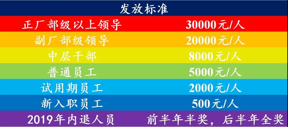 歲末將至,為激勵員工的工作熱情和積極性,在圓滿完成2019年度生產經營目標任務的同時,讓員工共享企業(yè)經營成果,結合公司的實際情況,經公司董事會、監(jiān)事會、經理層研究,制定2019年度年終獎發(fā)放標準。
