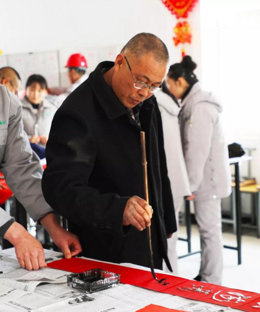 活動現場 “書法家”們一個個筆走游龍、各展所長,一句句充滿吉祥與祝福、蒼勁又靈動的毛筆字躍然于紙上。剛剛寫出的春聯,墨跡未干,便被大家“搶”到了手中,員工被氣氛感染,拿起筆揚揚灑灑也寫了起來。