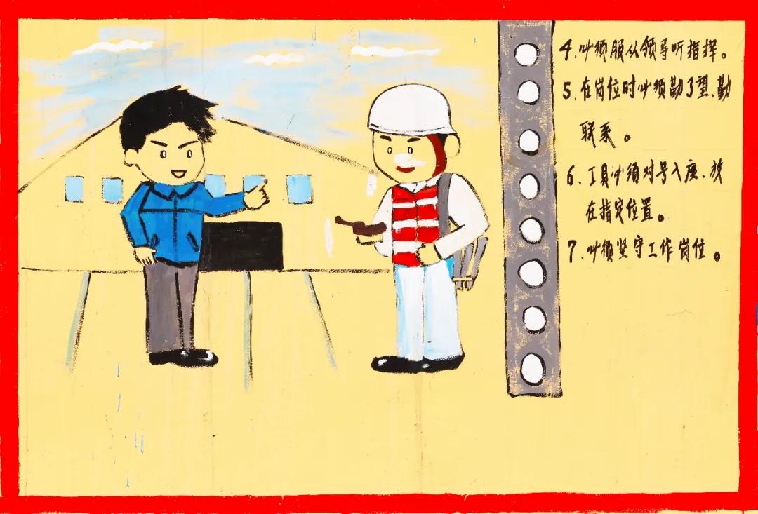 圍墻上、標示牌上,可愛的工友們徒手繪就了一幅幅生動、形象的宣傳畫,書寫了一行行充滿朝氣與活力的宣傳標語,畫里畫外、字里行間,是關切、是叮嚀、是警示、是公司的關懷、是家人的期盼。