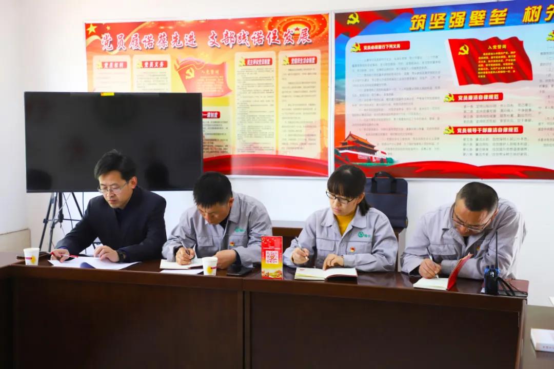 4月16日,縣委副書記、縣長魏棟深入公司二廠黨支部進行黨史學習教育專題黨課講授。縣政府辦主任郝亞峰,公司黨委副書記郜建軍、黨委辦主任王利及二廠支部黨員參加聽講。