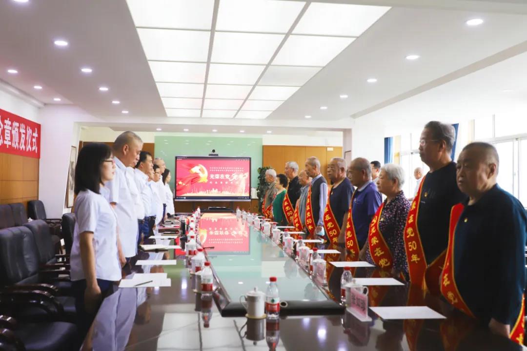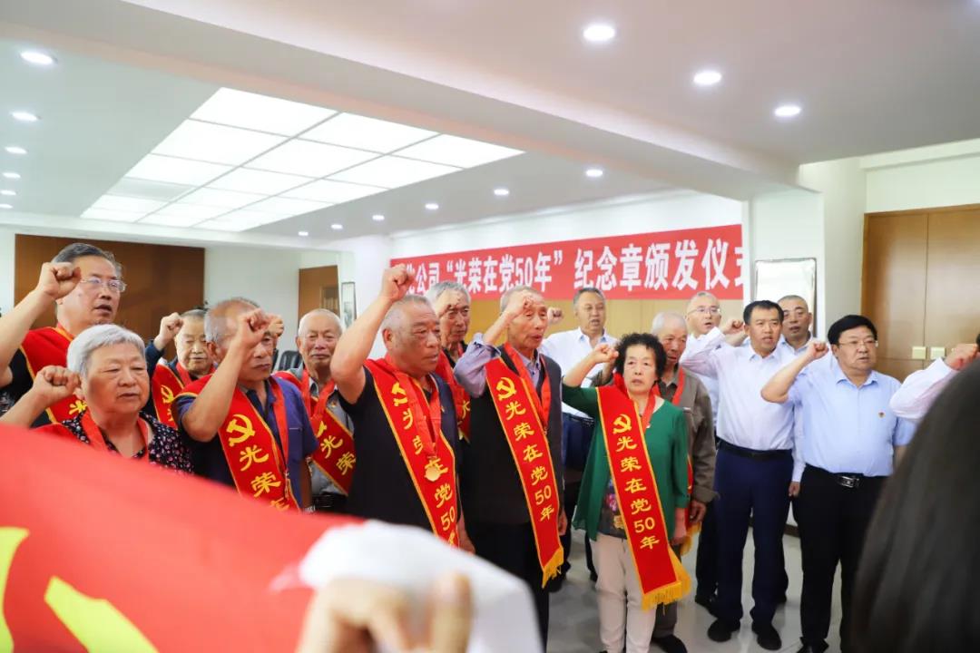 一百年征程浩蕩,五十載初心如磐。在建黨100周年之際,6月25日上午,公司舉行了莊重簡樸的“光榮在黨50年”紀念章頒發儀式,為黨齡達到50周年的老黨員代表頒發“光榮在黨50年”紀念章。頒發儀式由公司黨委副書記郜建軍同志主持,公司黨委委員、支部班子成員代表、黨代表、預備黨員代表參加會議。中共榆社經濟技術開發區黨工委書記王衛東同志出席會議并發表講話。