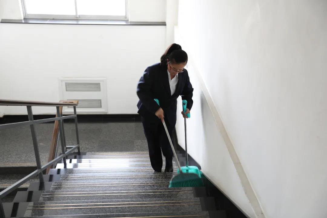 公司后勤員工打掃樓道衛(wèi)生