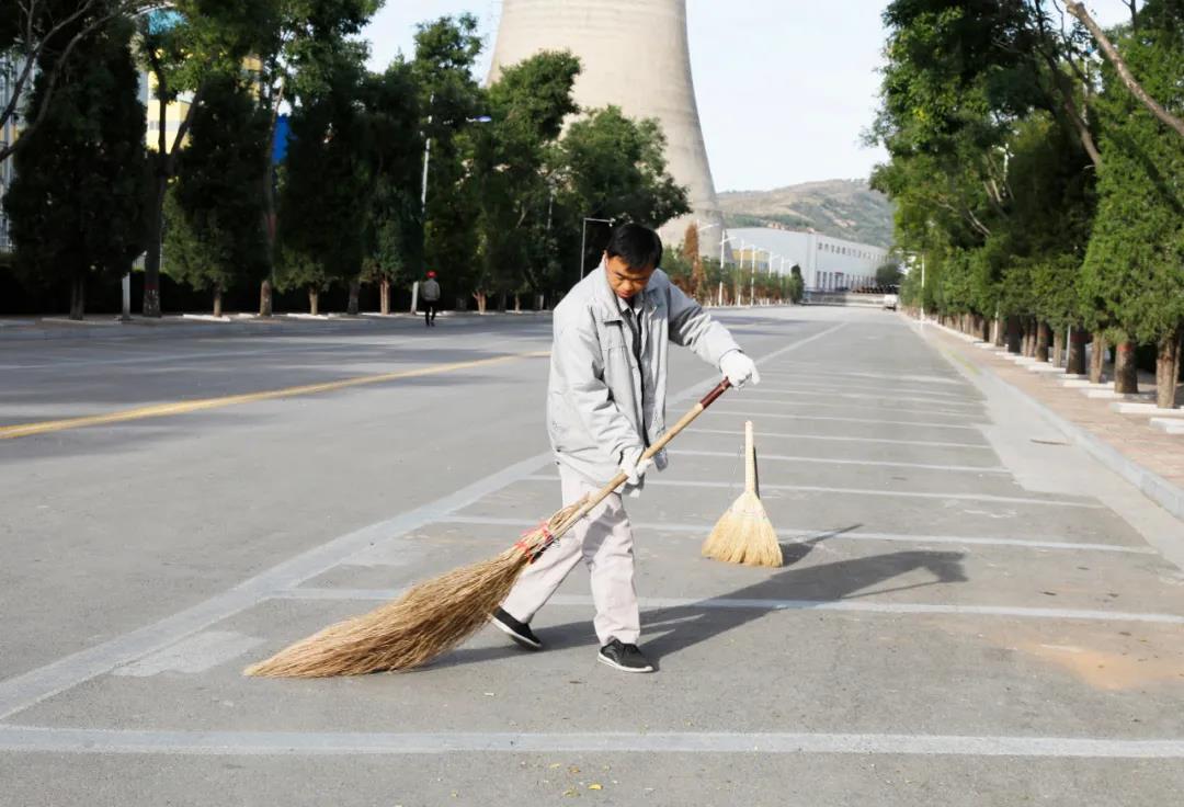 公司物業(yè)科員工清掃大路衛(wèi)生