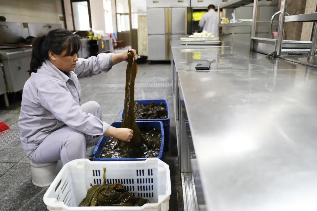 公司餐廳員工正在為值班員工準(zhǔn)備午餐