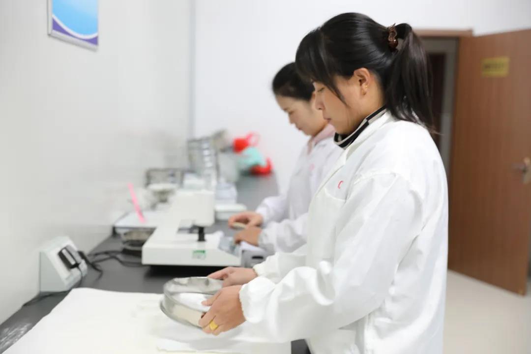 質(zhì)檢中心員工正在進(jìn)行PVC樣品篩余物操作