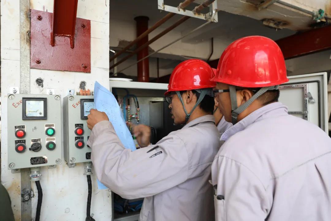 熱電廠檢修人員正在檢查凝結(jié)泵電氣柜線路