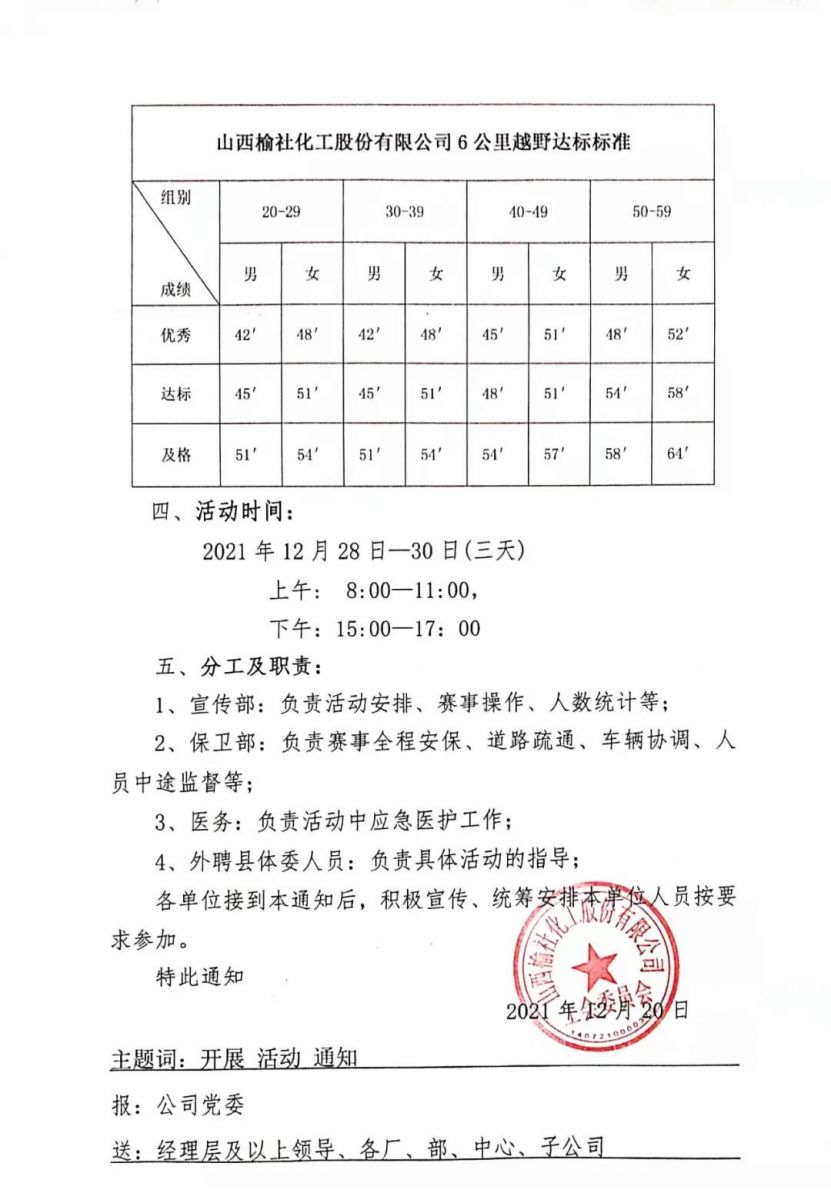 榆化公司關于開展“迎新年 · 強體魄”全員越野活動的通知
