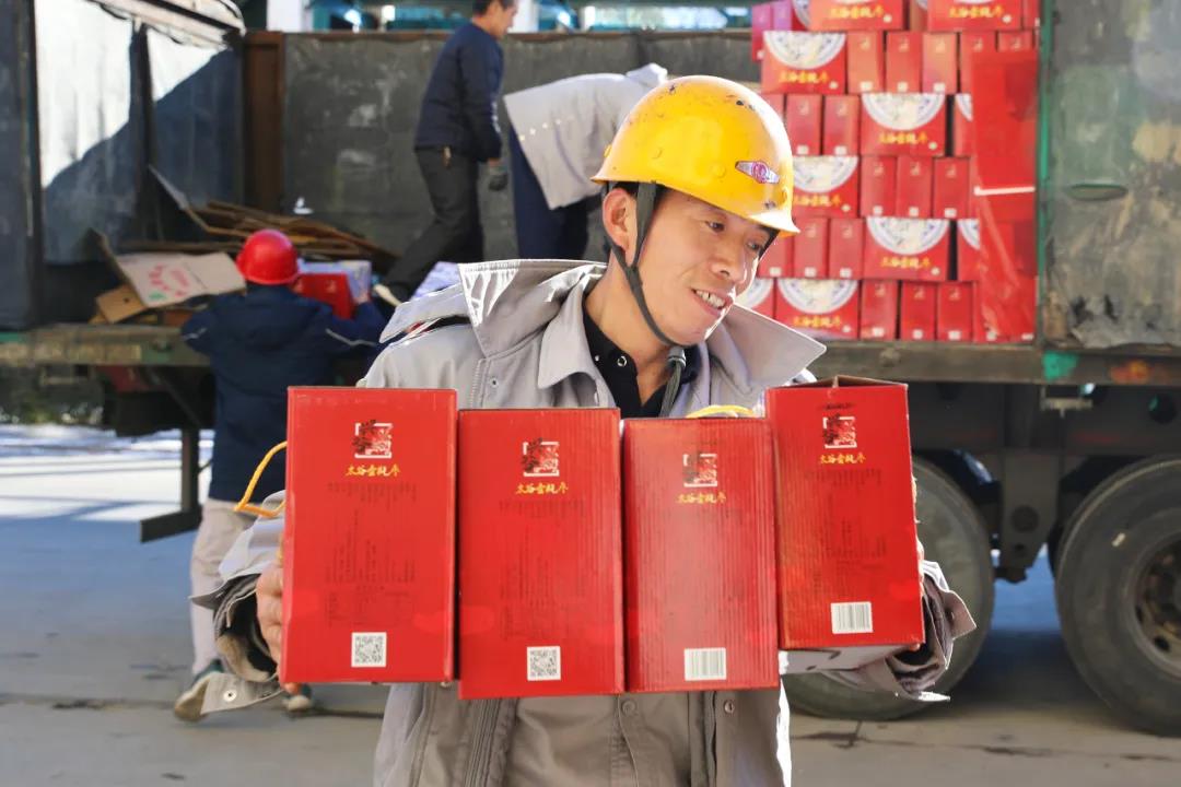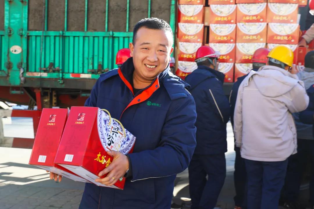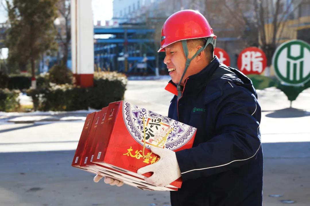 12月27日,公司各分廠辦公樓前,一箱箱紅棗福利整齊堆放,透過喜氣洋洋的包裝,都能夠讓人感受到幸福的味道。