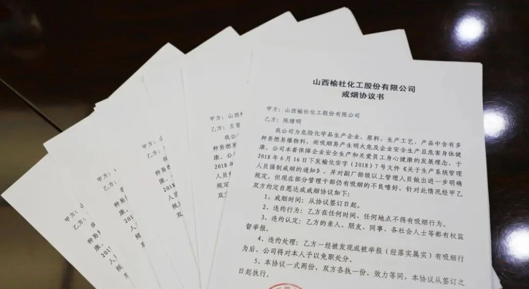 戒煙、減重事雖小但意義重大,本次年薪制人員戒煙協議書暨減肥承諾書簽訂儀式的舉行,是公司管理隊伍對員工、對社會做出的莊重承諾,積極引導全體員工樹立健康生活理念,以更強健的體魄更充沛的精力自覺主動參與到六型新榆化建設中來。