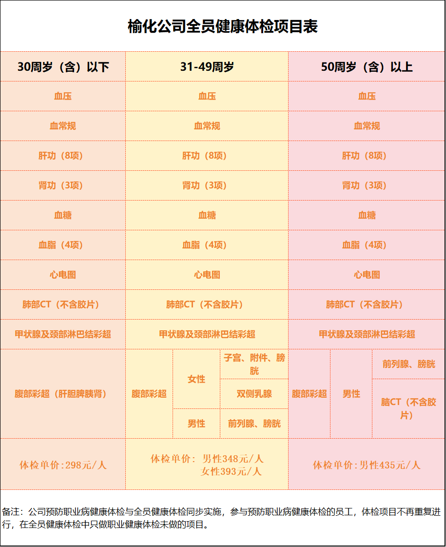 根據(jù)《榆化公司全員健康體檢實(shí)施方案(試行)》的文件精神,公司定于11月8日起組織開展全員健康體檢。具體事宜安排如下: