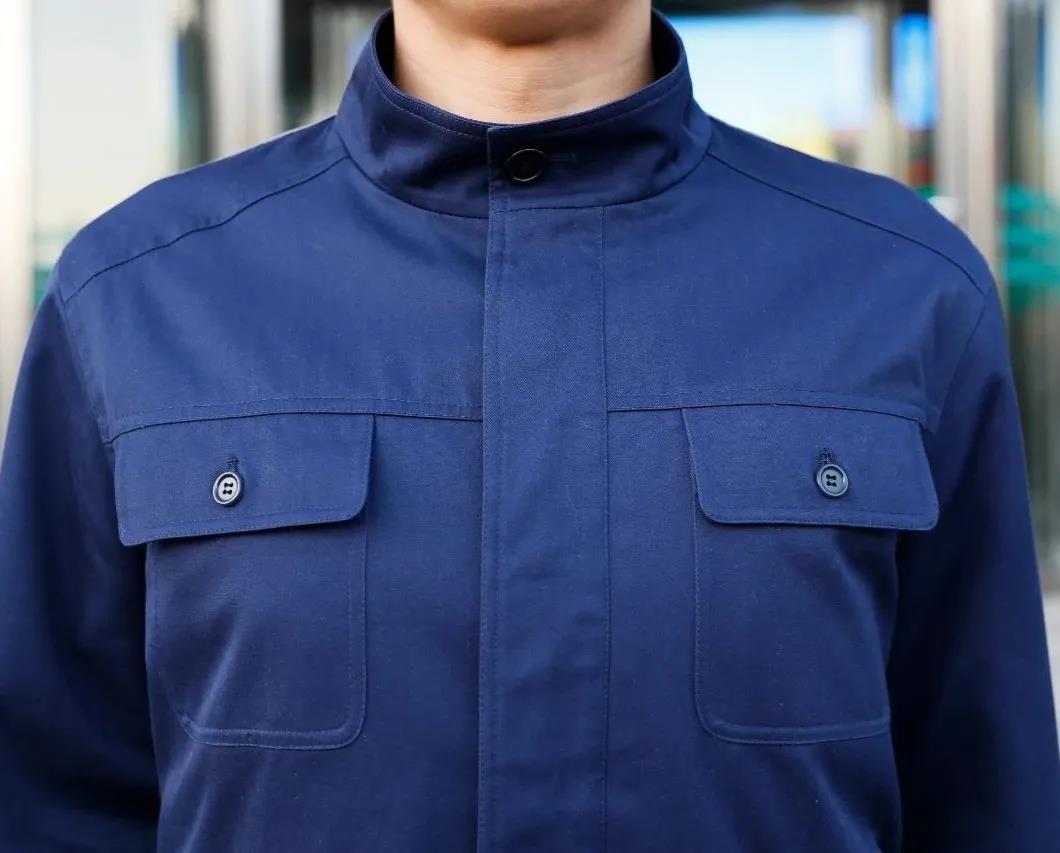 設計理念:顏色和款式上增加流行性、藝術性,使工裝適合更多的穿著場合,造型上強調實用性和美觀性,立領式設計增加服裝的防護性,在化工企業中減少員工裸露皮膚與空氣接觸,下翻式設計,使員工在平日的社交場合下,擁有更多的舒適性和活動性。在女性工服設計中,增添了與主色調補色為撞色,體現女性個性而不張揚的態度,款式上區別于傳統工服的男女同款,在女性工服的款式設計上,更加貼合女性線條,保持女性修身的視覺效果。反光條的關鍵在于增加夜間行走時的安全性,為區別與傳統工服,我司專門設計在肩頭和袖籠位置,保證安全性的前提下,提升整體服裝的立體感。系列中的湖藍色系實用耐看,使工服系列具有獨特的時尚流行感。