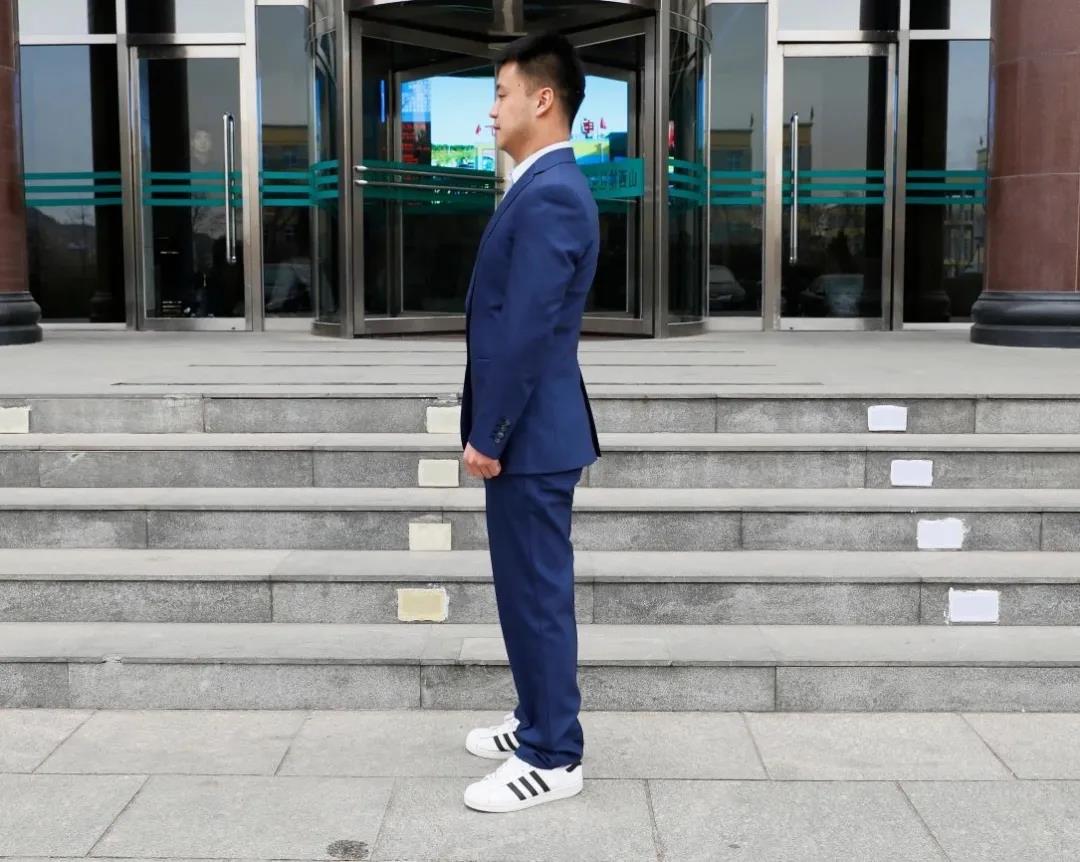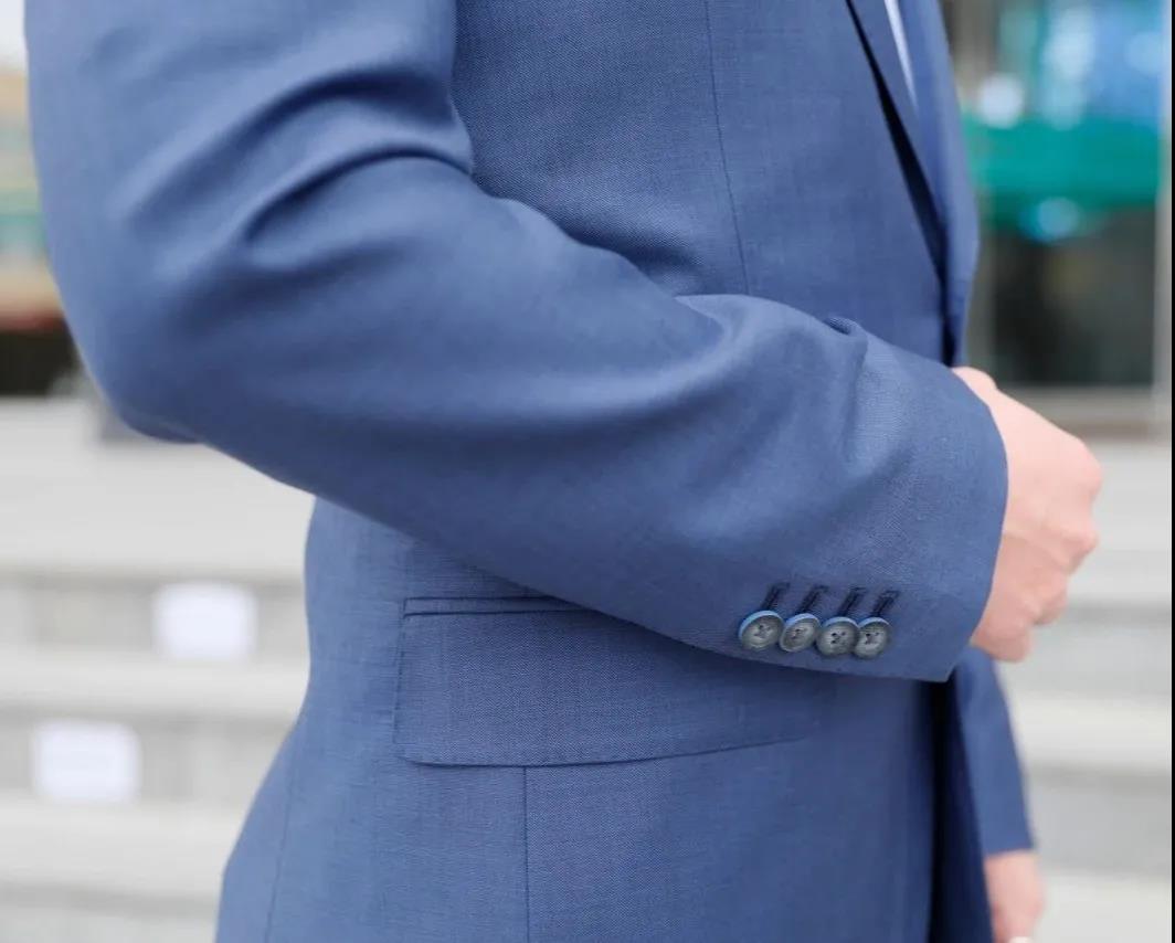 西裝:西服在整體設計上,符合了輕、柔、挺、薄等特性。西服的領子設計,在穿著后自然低于襯衫1-2公分,領子平順、服帖而富有靈氣。止口順直、均勻、不反吐。手巾袋工藝更加細致,袋寬2.7厘米,誤差不能超過0.5毫米,斜度剛好等于10度,誤差不能超過1度。袖籠部位使用绱袖工藝,使得袖籠非常圓順而飽滿,富有彈性,吃勢均勻,前圓后登。西褲的制作過程中我們還添加了很多的細節,如防滑腰里工藝、防磨褲腳邊翻折工藝,以及靈活多變的褲袢工藝和個性定制口袋深度工藝等。