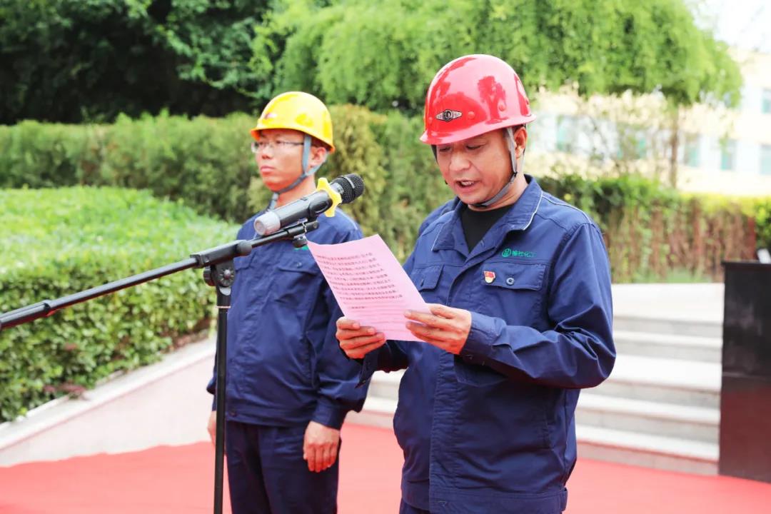 第二項,由公司安環部副部長趙劍鋒帶領員工代表面向安全旗作安全宣誓。