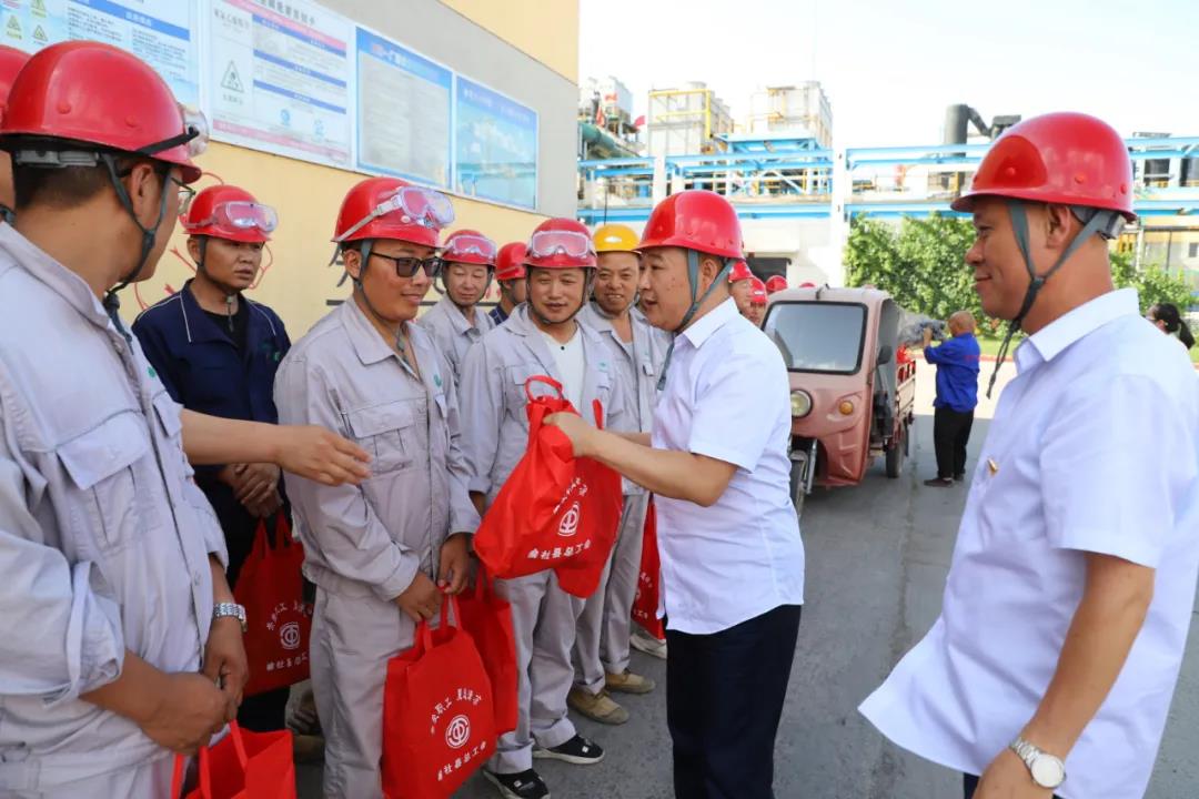 縣總工會領導一行來到樹脂一廠工作現場慰問了100余名高溫崗位員工,為他們送上茉莉花茶、冰糖、柑粉果味固體飲料、綠豆、礦泉水、毛巾等防暑降溫物品,將黨和政府的關懷和溫暖送到員工心中,并叮囑廣大職工要做好自身的防暑降溫工作,注意人身安全和生產安全。希望企業在做好常態化疫情防控的同時,關心高溫天氣下堅守在崗位的一線職工,搞好飲食衛生和防暑工作,切實保障職工安全和身體健康,扎實做好高溫季節后勤保障。