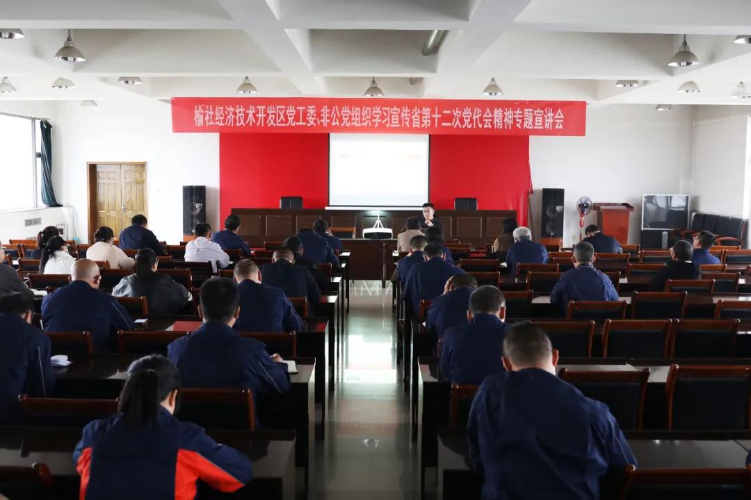 11月5日,榆社經濟技術開發區黨工委、非公黨組織學習宣傳省第十二次黨代會精神專題宣講會在我公司五樓會議室舉行。