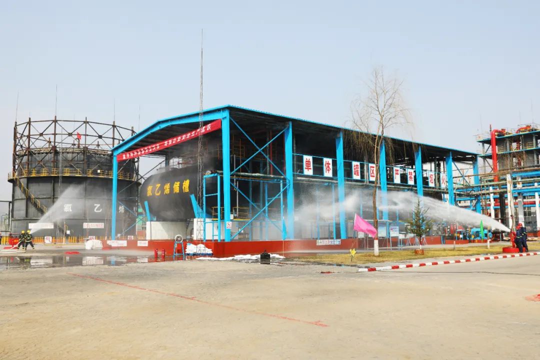 演練模擬氯乙烯單體儲槽排污閥前短管破裂,發生氯乙烯泄漏及人員中毒事故,根據事故情況逐級上報,公司、縣、市分別啟動應急響應,各應急小組根據職責分工完成事故研判、現場救援、現場隔離、搶救中毒人員、環境監測、搶修設備及新聞報道等應急處置工作。演練過程嚴格執行應急預案,從應急響應到現場處置結束,各部門協調聯動,各小組任務分工明確、工作人員配合默契,處理科學規范,30分鐘內就完成了應急處理,達到了預期效果,有效檢驗了應急處置能力。