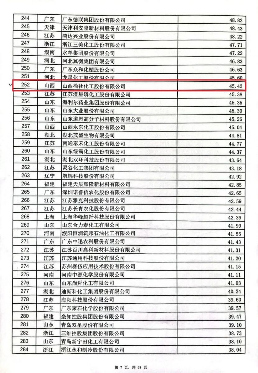 榆化公司在2023中國石油和化工企業500強排行榜位中位列252位,在2023年基礎化工原料企業100強中位列57位。