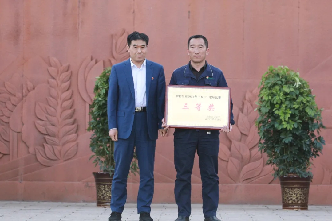 黨委副書記、常務副總經理劉洋宣讀了《山西榆社化工股份有限公司關于表彰2024年“五一”勞動模范的決定》。公司充分肯定了勞動模范的優秀品質和突出貢獻,號召全體干職員工以勞模為榜樣,向勞模學習,勇于擔當、甘于奉獻,堅守崗位職責,為企業發展貢獻自己的智慧和力量。
