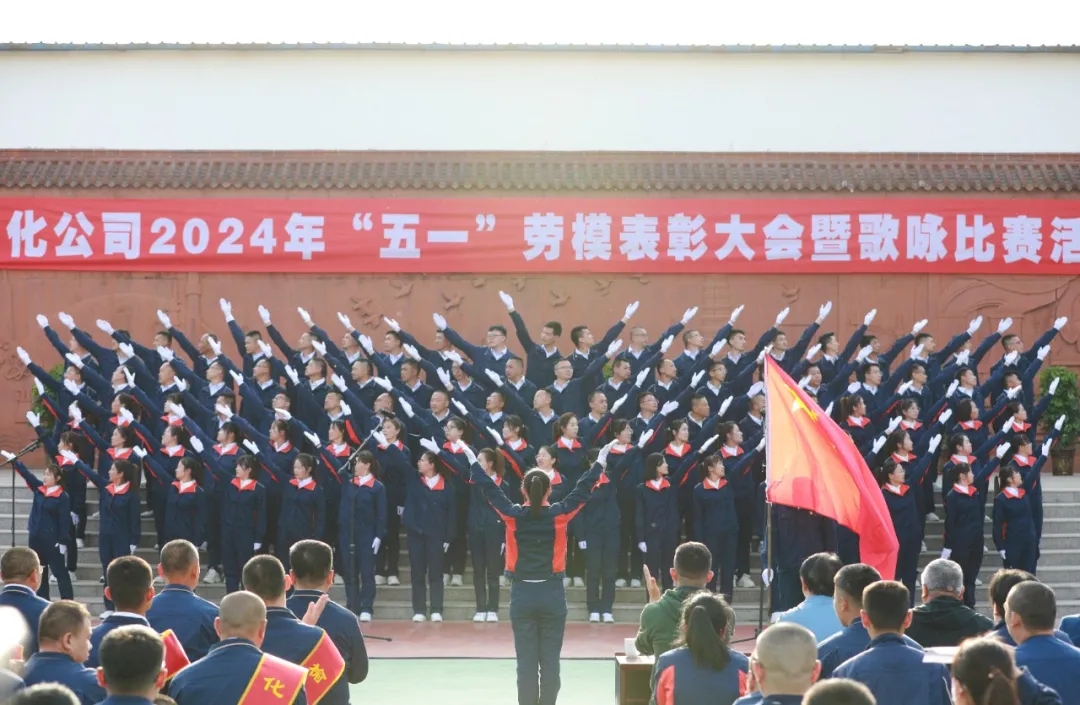 勞動節將至,公司籃球場旌旗飄揚,花團錦簇,處處洋溢著歡樂祥和的節日氛圍。4月30日,榆化公司2024年“五一”勞動模范表彰大會暨歌詠比賽活動隆重舉行。
