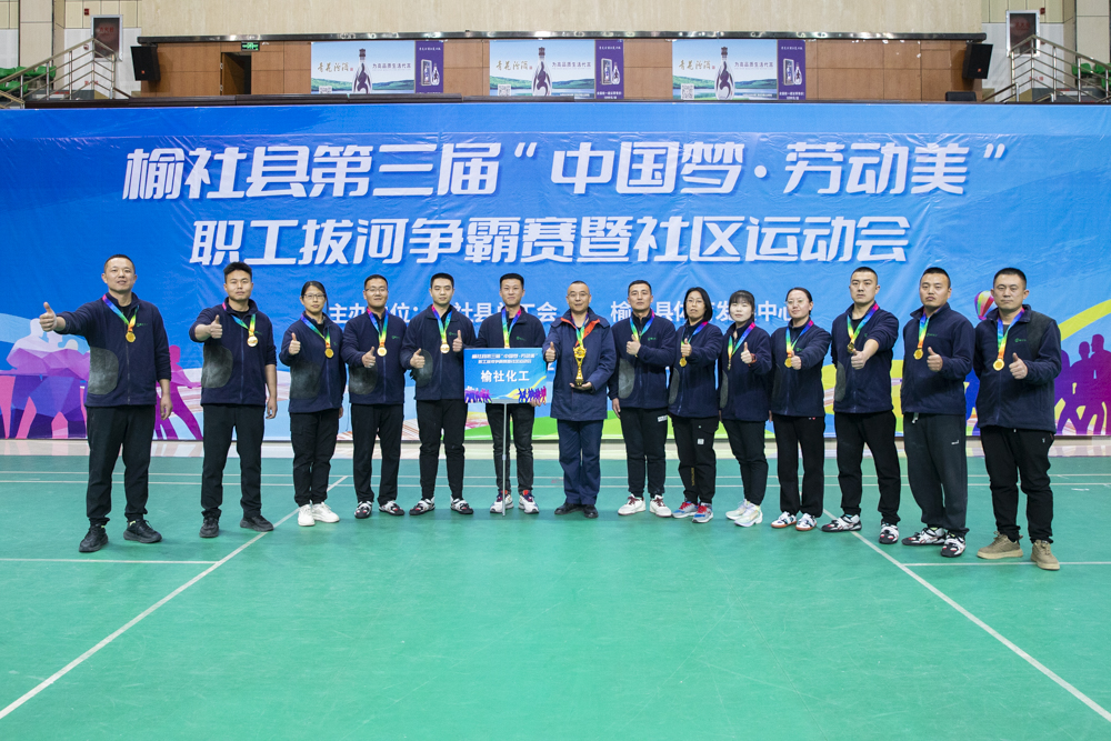 本次活動由榆社縣總工會、榆社縣體育發展中心主辦,共有24支代表隊參賽,在為期兩天的活動中,選手們用一股不服輸的拼勁與韌勁,為大家帶來一場場精彩對決。比賽中,公司拔河隊員們充分發揚精誠團結、頑強拼搏的精神,以高昂的斗志和堅定的信念投入比賽中,用一場場酣暢淋漓的勝利展現了榆化人昂揚向上的精神風貌。