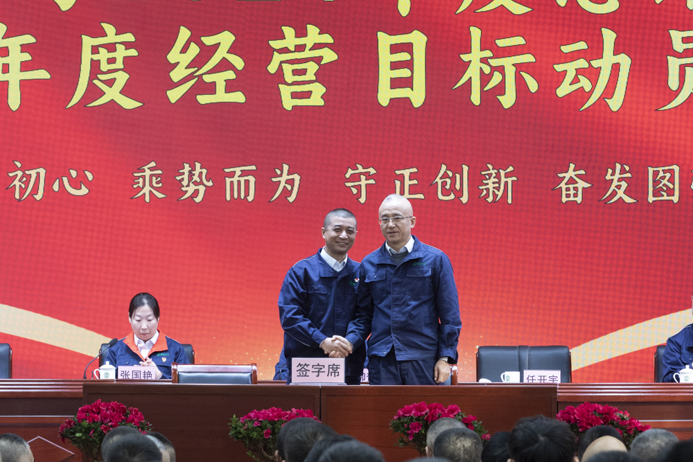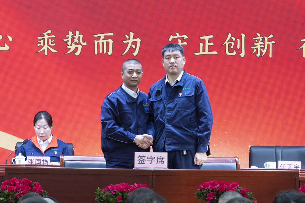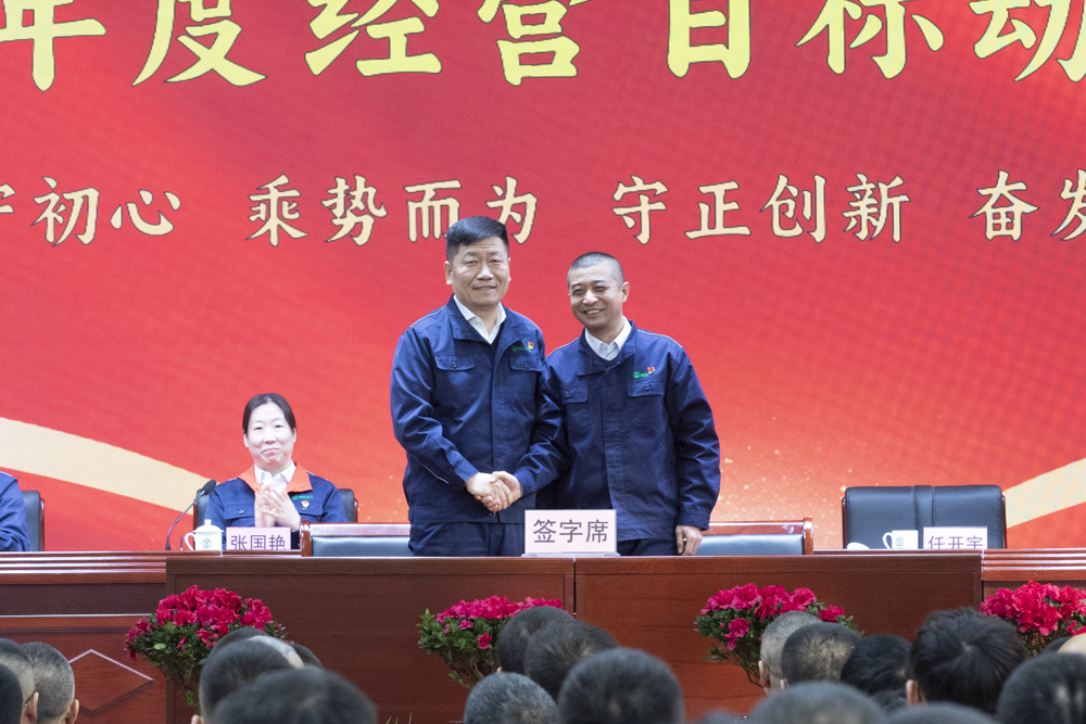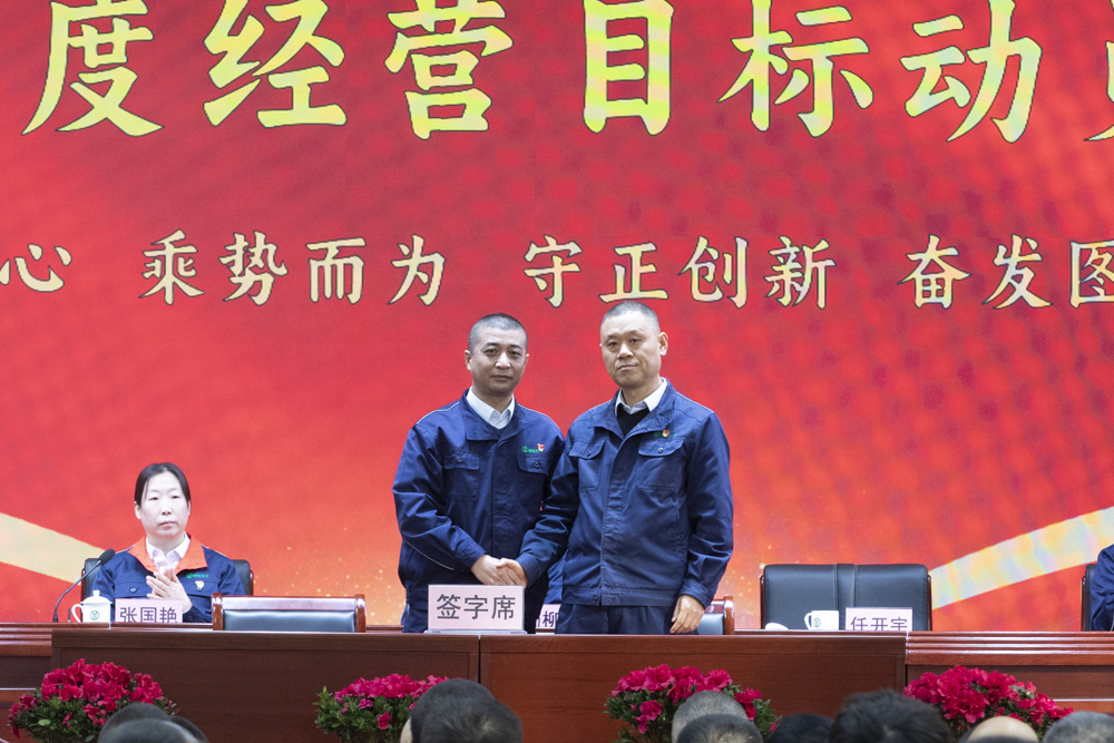 公司黨委書記、董事長(zhǎng)楊柳青分別與總經(jīng)理、財(cái)務(wù)總監(jiān)、人力資源負(fù)責(zé)人簽訂目標(biāo)責(zé)任書,黨委副書記、總經(jīng)理任開宇分別與總工程師、山西榆化精細(xì)化工有限公司法人代表、榆社縣遠(yuǎn)安物流有限公司負(fù)責(zé)人簽訂目標(biāo)責(zé)任書。