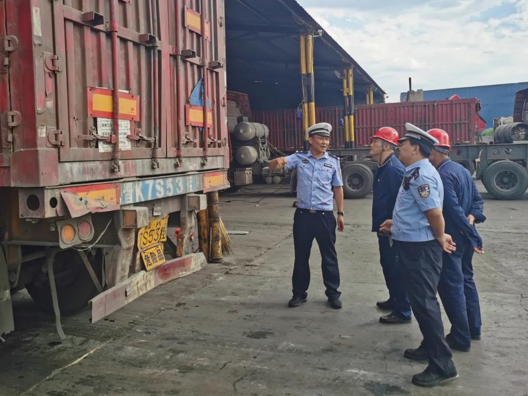 6月21日,平榆高速六支隊五大隊副隊長賀永平帶隊到公司遠安物流開展安全檢查工作,安全科科長裴永軍、市場科科長岳二軍陪同。
