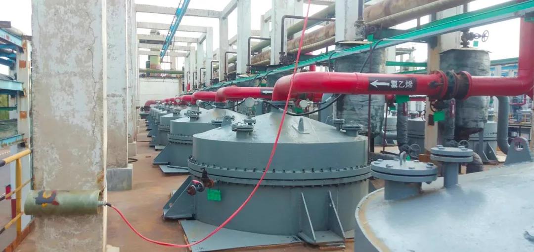 轉化器的正常運行是氯乙烯工段穩定的關鍵,除了要對轉化器進行外部保養外,還要嚴格控制工藝指標,保證每臺轉化器的正常運行。要求每個操作工精心調整配比,分析工按時做好分析,并且及時準確的將數據報告微機工,切不可弄虛作假。儀表工加大力度將轉化器上有壞點的測溫桿換掉,必須保證微機上每臺轉化器的溫度顯示正常。現場巡檢工按時對轉化器進行排酸檢查,杜絕一切“跑、冒、滴、漏”,有不正常必須及時甩下處理。只有微機工、巡檢工、儀表工、分析工三者緊密聯系,齊心合作,才能保證轉化器的正常運行,才是對轉化器最 好的維護保養。