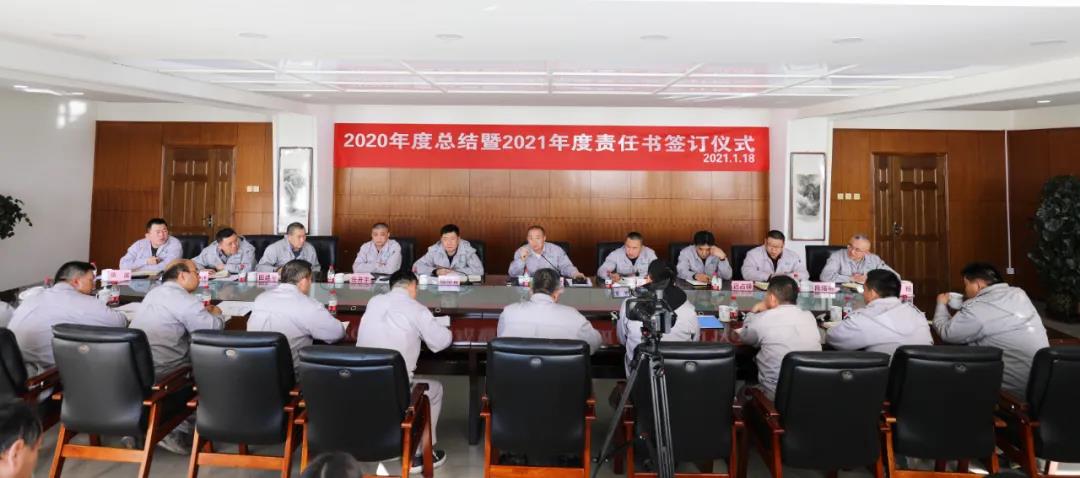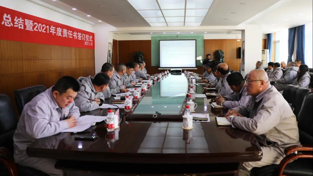 1月18日,公司在三樓會(huì)議室召開2020年度總結(jié)及2021年度責(zé)任書簽訂儀式,公司黨委、董事會(huì)、監(jiān)事會(huì)、經(jīng)理層,各廠、部、中心、子公司負(fù)責(zé)人參加會(huì)議。根據(jù)疫情防控要求,公司對(duì)2020年度總結(jié)表彰大會(huì)進(jìn)行了調(diào)整,將先進(jìn)集體、先進(jìn)個(gè)人的表彰與2021年度“五一”勞動(dòng)模范表彰合并延后舉行,縮小范圍召開2020年度總結(jié)會(huì)。會(huì)議由公司副董事長(zhǎng)、財(cái)務(wù)總監(jiān)楊柳青主持。