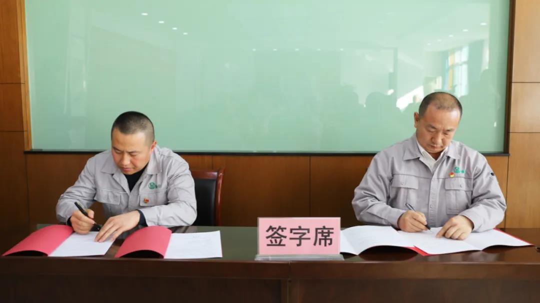 公司黨委書記、董事長(zhǎng)劉俊分別與總工程師、財(cái)務(wù)總監(jiān)、人力資源總監(jiān)、子公司法人代表簽訂了2021年度《工作目標(biāo)責(zé)任書》《安全環(huán)保目標(biāo)責(zé)任書》。