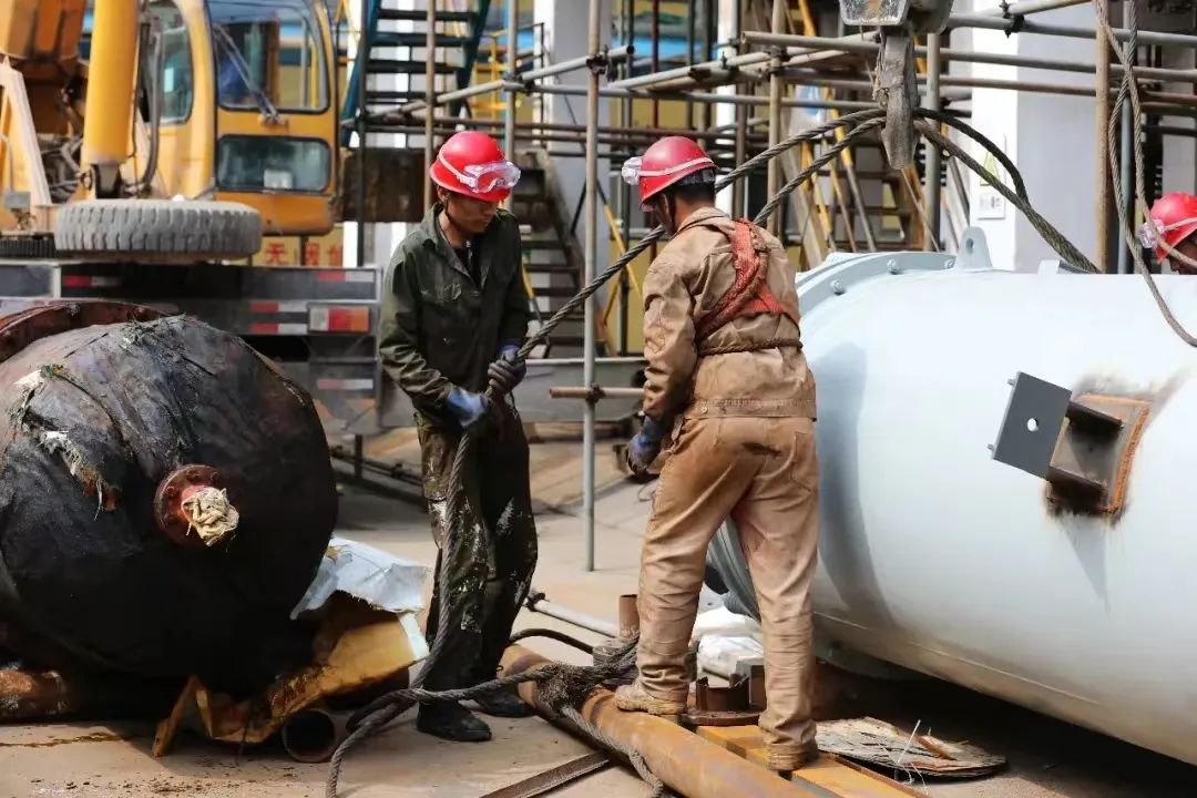 7月1日,在樹脂一廠氯乙烯工段,檢修人員正在加班加點對混脫防爆板進行更換。自春檢戰役打響以來,樹脂一廠整合人員力量,在堅持“安全第一、質量為先”原則的前提下,加快推進春檢工作進度。春檢中,檢修人員始終堅持嚴謹認真的工作態度和艱苦奮斗的戰斗作風,嚴格辦理各類作業票證,不折不扣落實各項安全措施。領導干部現場盯守,對現場氣瓶布置、防護用品穿戴、作業規范等問題進行檢查,從嚴從實狠抓現場管理,堅決杜絕三違現象,確保檢修安全。