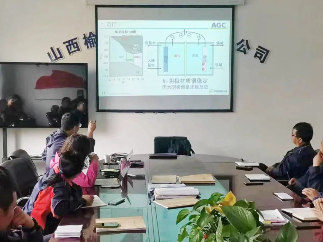 5月25日,電化廠邀請離子膜廠家技術員對員工進行專業培訓,重點針對有極距與零極距電解槽的構造、北化機電解槽離子膜全程換膜操作及注意事項等方面進行詳細講解。培訓結束后員工主動與廠家技術員交流,詢問知識難點以及日常工作中遇到的困難和問題。通過此次專業技術培訓,提升了員工的日常操作技能,有效延長離子膜的使用壽命,提高電流效率,降低生產成本,為春檢期間電解槽更換離子膜提供強有力的保障。